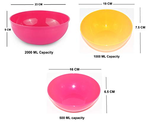 Bowls set is made of high quality food grade plastic material so this set is very durable and long-lasting. This bowl set is very useful and multipurpose