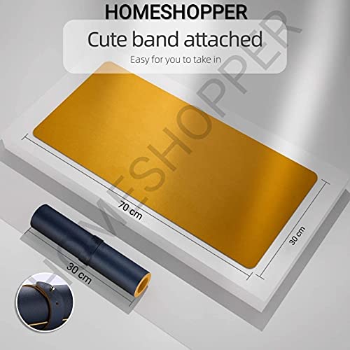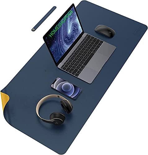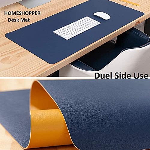 HOMESHOPPER Dual-Sided Multifunctional Desk Pad, Waterproof Desk Blotter Protector, Leather Desk Writing Mat Mouse Pad, Desktop Gaming Writing Mat for Office Home, Dark Blue/Yellow (70 X 30 cm)