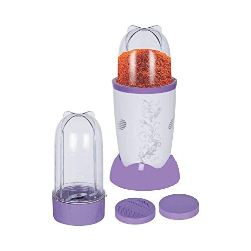Included Components: Comes with 2 interchangeable unbreakable poly carbonate jars (Long Jar-500ml & Short Jar- 300ml) with storage and sprinkler caps.Anti-rust Stainless steel grinding and blending blades.Steady and safe to use with non-skid rubber footing.