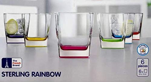 HOMIES, Sterling Rainbow High Ball Tumbler Set of 6, 250 ml each, Size: 9 (H) x 8 (D) cms, Multicolor Color: Multicolour, Material: Glass, Size: 9 (H) x 8 (D) cms, Capacity: 250 ml each, Package Contents: 6 Pieces Glass Tumbler set High Ball Tumblers are suitable for water, juices, fizzy beverages, alcoholic drinks requiring long glasses etc These can be safely used in dishwasher Luminarc products are extremely resistant to dishwasher cycles, Even after extensive usage, the products will keep their original aspect Each glass has a different coloured base, Clear and durable products made of soda lime glass by Luminarc which are highly trusted by all food service professionals for their quality Makes for an excellent gift option as it provide great value, Comes in a lovely colour box Design: Straight and simple with stable base, Can be used at restaurants and hotels, Makes the beverage look attractive, Ideal for daily use at home, Scratch Resistant Assorted 6 colours on the bottom of the Glass – Yellow – Green – Blue -Orange – Red – fuchsia – artistically designed to coordinate beautifully with any tabletop décor, Complete the look with coordinating table top accessories
