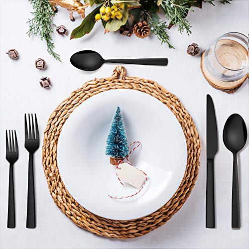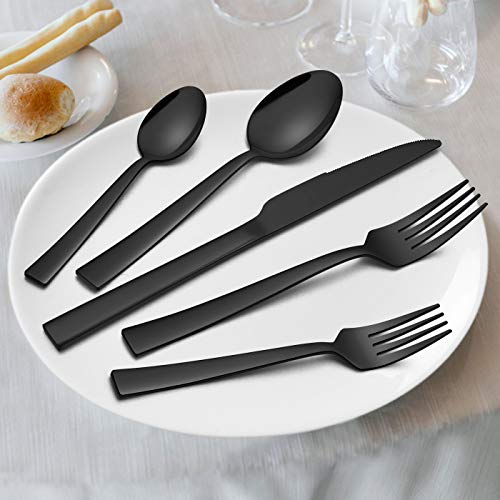 60-Piece Shiny Black Stainless Steel Silverware Flatware Set contains all the cutlery set you need for eating, great for serving your daily meals and entertaining your guests well. Modern flatware utensils set is well-designed with high quality stainless steel, sturdy and durable to serve you for years. Unique square handles add a touch of elegance to your tableware. It’s a great addition to your table settings, perfect for home daily use, family gathering, party, restaurant, hotel, wedding and other formal or casual occasion. It’s also a wonderful gift for Thanksgiving, Christmas, Mother’s Day and more festivals.