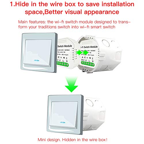 ♣ Super mini design, can be hidden in a wire box, designed to transform the tranditional switch into a smart one.