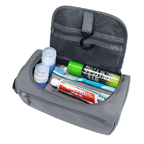 Multi compartments and hanging hook-our portable dopp kit has one main compartment, one mesh zippered compartment, and one outside zippered compartment allowing you to easily store all your travel sized toiletries