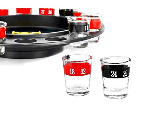 HOW (HOUSE OF WISHES) with Device Drinking Game with 16 Shot Glasses, Funny Party Casino Gambling Poker Accessories Bar Game Set, Spinning Wheel and Roulette Balls