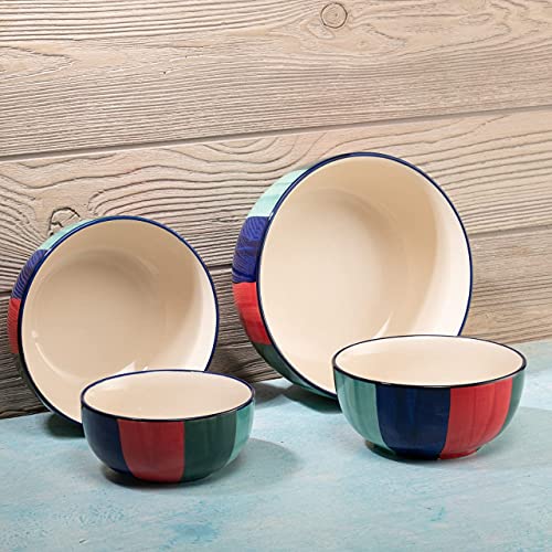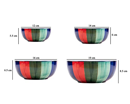 HS HINDUSTANI SAUDAGAR Ceramic Multicolour Rain Blue Handpainted Contemporary Serving Bowl Set of 4 ( 1000 ml , 750 ml , 500 ml and 350 ml )