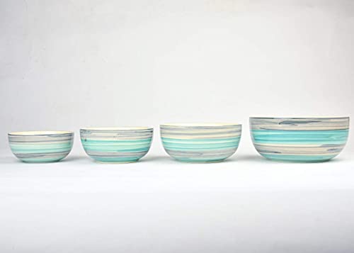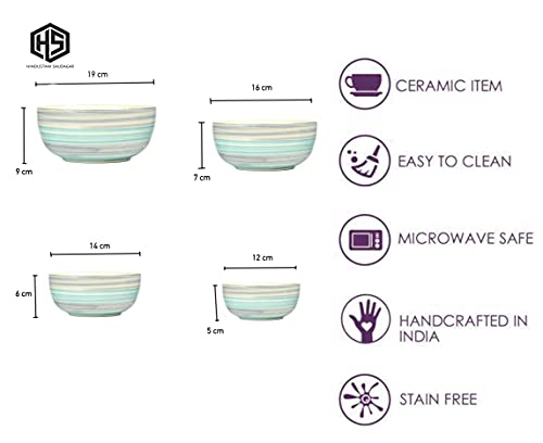 HS Hindustani Saudagar Sea Green Handpainted Serving/Snack/Mixing Bowl Set of 4 (1000 ML, 750 ML, 500 ML and 350 ML)