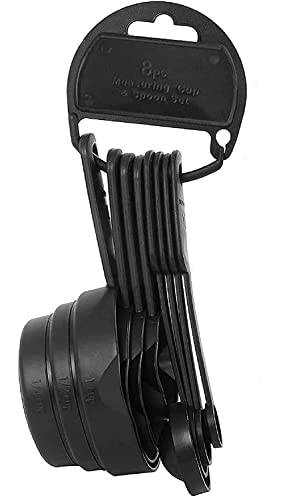 Measuring Cups and Spoons Set – A must kitchen essential (8 Pieces Set) 8 measuring cups and spoons in a ring holder. Accurately measure solid and liquid food ingredients for cooking and baking Ring holder for easy removal of spoons/cups. Spoons and cups nest into each other for convenience in hanging and storing