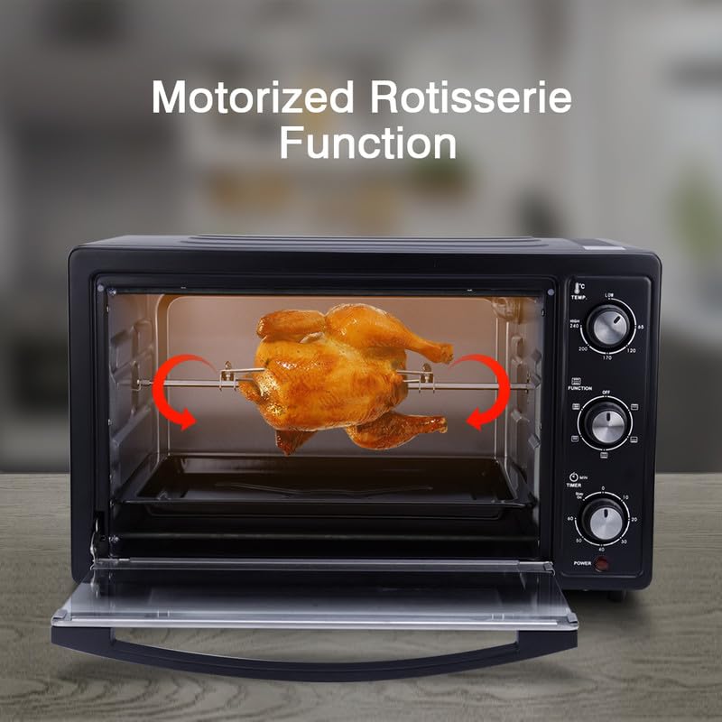 1600W Power, 60 Minute Timer, Rotisserie Function, Full Black Housing, 30L Big Capacity, Inner Light, AC 230V, 50Hz