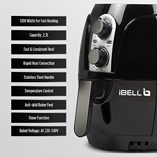 iBELL AF23B1 Air Fryer 2.3 Litre 1200W Crispy with Smart Rapid Air Technology,Timer Function & Fully Adjustable Teperature Control(Black)