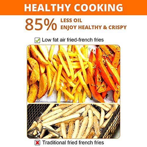 10 Preset Programs: The air fryer oven offers 10 preset menus with precise time settings and temperature control to cook or reheat the food quickly, taking place of the deep fryer, oven, frying pan, toaster, sandwich maker, defroster, microwave oven. It’s time to release kitchen space with the multifunctional air fryer.