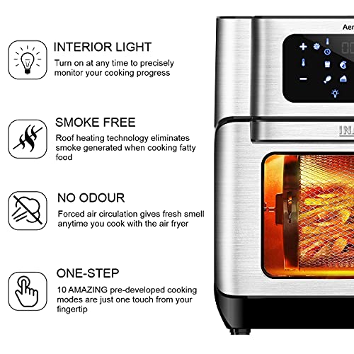 Environment Friendly – No More Smoke & Oil Splash. To care for you & your family, Inalsa Aero Crisp Air Fryer Oven offers an environment with no smoke & oil, as kitchen smoke and oil splash do harm to the body in long-term cooking.