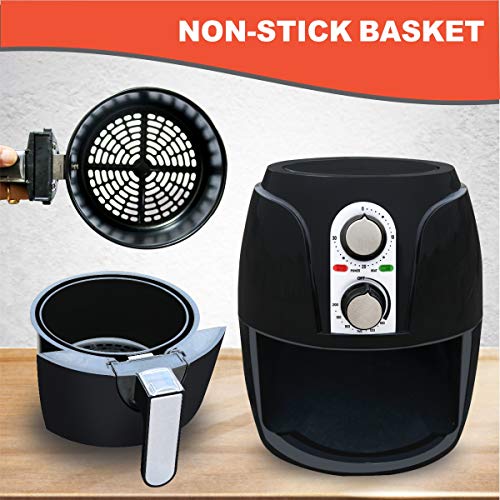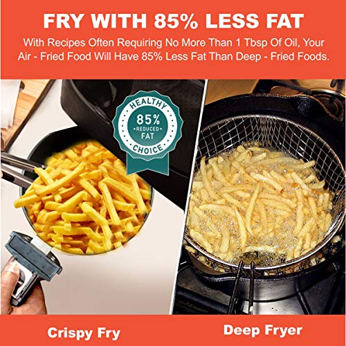 Fast-Heating and Adjustable Temperature Control — With 1200w of power, this air fryer heats up in 2-3 minutes and cooks food faster than a conventional oven so you can save money at the same time as cutting down the calories