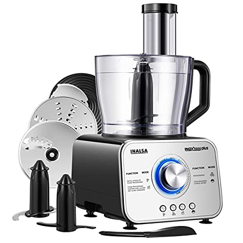Multi-functional: Inalsa Inox 1000 Plus food processor is suitable for chopping, shredding, slicing and emulsifying foods. It can make citrus and vegetable juice, beat cake batter and egg whites, knead bread-dough & grind meat and vegetables.