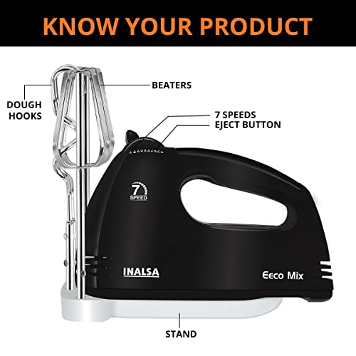 Be the first to review “Inalsa Hand Blender Hand Mixer -Eeco Mix with Powerful 180 Watt Super Silent Pure Copper Motor| Variable 7 Speed Control| Includes Mixer/Beater & Dough Hooks| Hand Mixer with Stand, (Black), Small”