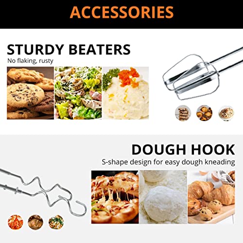 Attachments for all your cooking tasks:Beat, Mix, Whisk, Blend, Mash with high quality attachments-2 Detachable Beaters & Whisker/Dough Hooks that will take care of your meal preparation. Now making doughs& batters is quite an easy task