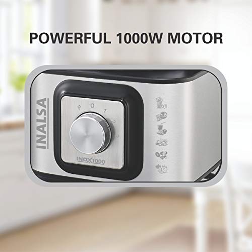 Be the first to review “INALSA INOX 1000 1000W Food Processor with Blender Jar,304 Grade SS Dry Grinding,Chutney Jar,12 Accessories,Centrifugal & Citrus Juicer,(Black/Silver)”