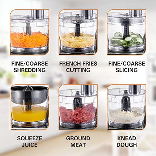Spend Less Time In The Kitchen-This multi-function 1000W food processor comes quipped with 100% Copper Motor & does it all. Ideal for busy kitchens when space is at a premium. Deal with any tasks including grinding,blending,mixing & juicing.Perform multiple tasks with just one appliance