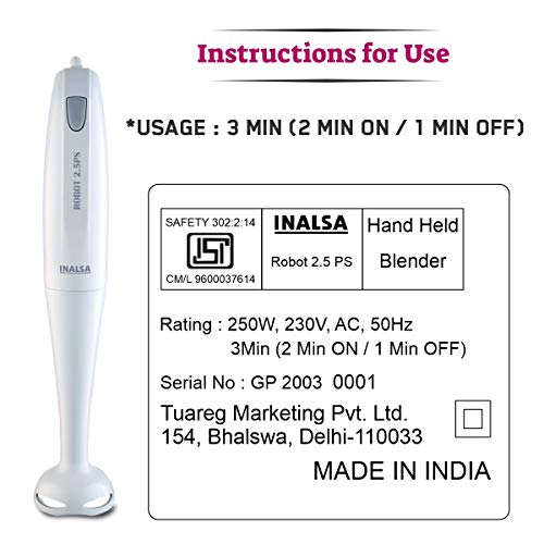 Be the first to review “Inalsa Robot 2.5 PS 250-Watt Hand Blender with Super Silent Powerful Motor| Detachable Stem | Multipurpose Stainless Steel Blade, ( White )”
