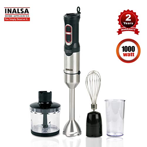 LOCK & PRESS OPERATION-> On the press of a button, attach chopper, blending wand & whisker according to your cooking requirements. Quickly blend endless ingredients with Robot Inox 1000.