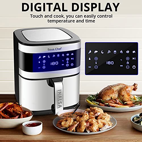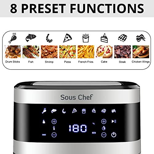 8 PRESET MENU: Air Fry Digital’s 8 preset programs will let you cook frozen potatoes, natural potatoes, all kinds of vegetables, chicken, sausage, meat, fish, cakes and more!