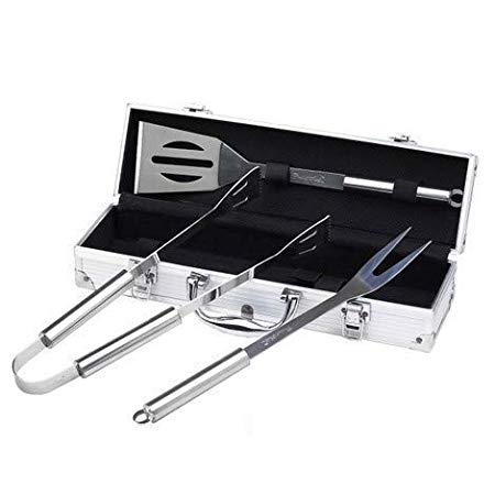 Inllex BBQ Grill Tool Set- 3 Piece Stainless Steel Barbecue Grilling Accessories with Aluminum Case, Including Spatula, Tong & Fork-Perfect Outdoor Grilling kit in Gift Box Packaging