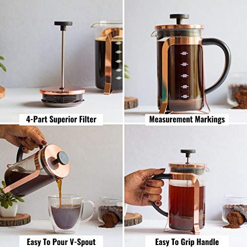 SLEEK AND TIMELESS DESIGN – our coffee press has that classic coffee maker appeal, with highly polished stainless steel accents making it a beautiful gift for any coffee lover.