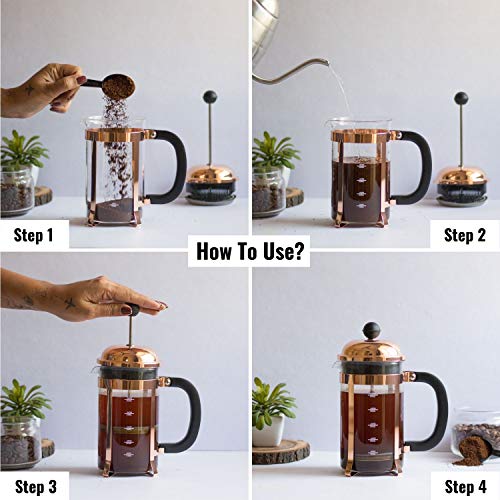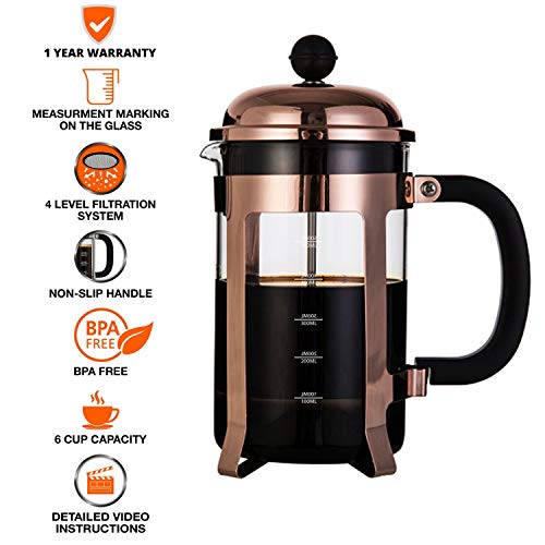 BUILT FOR DURABILITY – our coffee plunger is made from premium grade 18/8 stainless steel and extra tough borosilicate glass carafe that does not break easily.