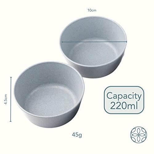 HEALTHY SERVING BOWL: Eco-friendly bowl set of 4 made from non-toxic rice husk, bamboo, and fibre bowl is suitable for everyday use, picnics, and gatherings. Features freezer and microwave safe bowl for snacks and salad mixing with 220ml capacity.
