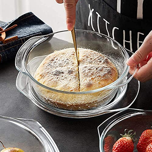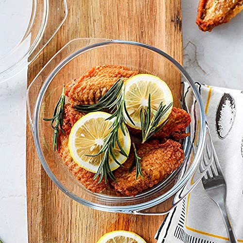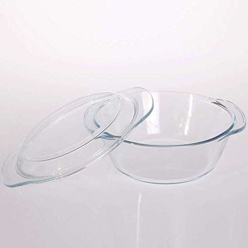 ISH Clear Round Glass Bowl Casserole with Lid Glass Bakeware Easy Grab Baking Dish, Microwave, Oven, Freezer, and Dishwasher Safe Set of 2 (1000 ml)
