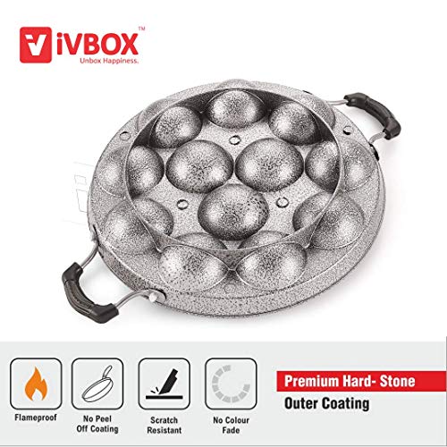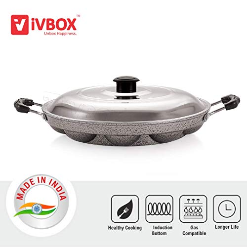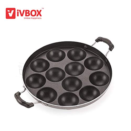 ivbox Eco-Series Non-Stick 12 Cavity Appam Patra Paddu Paniyarakkal Maker Chatty Paniyaram Pan Ponganal Baati Baking Pot with Steel Lid  (Aluminium, Non-Stick), Silver (Eco-12C)