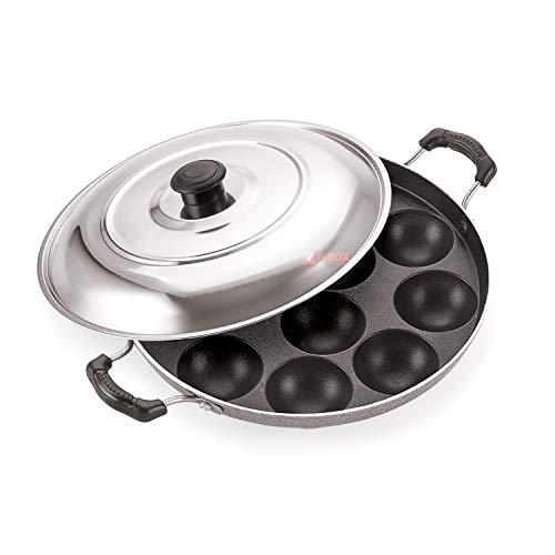 ivbox Eco-Series Non-Stick 12 Cavity Appam Patra Paddu Paniyarakkal Maker Chatty Paniyaram Pan Ponganal Baati Baking Pot with Steel Lid  (Aluminium, Non-Stick), Silver (Eco-12C)