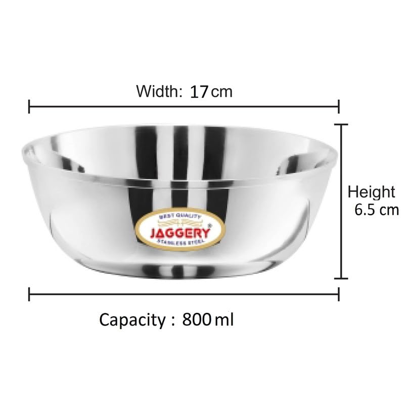 JAGGERY Stainless Steel 700ml Katora Set, Big Bowl Rust Proof, Useful as Mixing Bowl or Serving Donga (17 cm Diameter, Pack of 2)