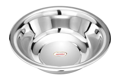 Jaggery Stainless Steel bowl will be strong and durable. The Jaggery bowl has easy grip rounded lip makes handling easier, this generous wide rim allows contents to flow evenly when pouring. Cooking bowls with a sure grip, means your mixing, baking, beating eggs and sauteing is easier and less time consuming. The stay put flat base is stabilizing, ensuring your ingredients stick around The Jaggery bowl are lessweight. It is used to store and also easy to pour something. this bowl is made from stainless steel and can be used to serve things perfectly. Its got a well crafted design to feel light when you pick it up. This product can be used to serve several things like salad, curries, rice, snacks etc. This bowl can also be used in kitchen for several purposes, like preparation of meals, making mixes for dishes, beating the dough in it etc. This bowl is completely food safe. This bowl is in silver color and its got a shiny finish. This bowl can be easily cleaned.