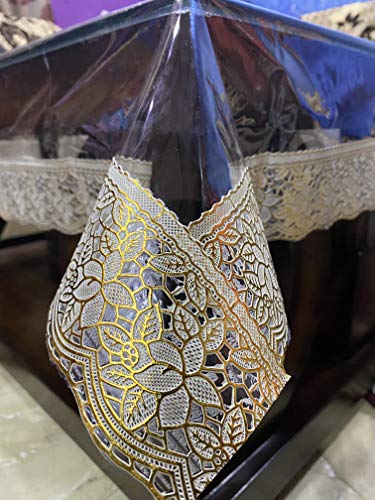 Jainco Decor Waterproof PVC Plastic Clear 4 Seater Square Table Cover (Transparent, Golden Lace, 48 x48 Thickness: 0.20mm)