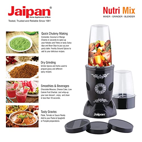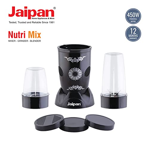 Jaipan High Speed Nutri Blender/Mixer/Smoothie | 22000 RPM 100% Pure 450 Watt Copper Motor 450-Watt || Blender Juicer | 3 in1 Grind, Mix, Blend| Stainless Steel Blades | 2 Unbreakable Jars