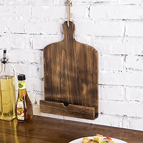 Ideal for keeping your hands-free while following recipes on your cookbook, magazine, or tablet Rope allows cookbook holder to be hung from wall surfaces with proper hardware (Mounting hardware not included)