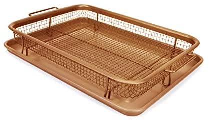Japti Air Fry Crisper Basket for Bake or Fry Food Oven Crisper Tray Carbon Steel Pan, Non Stick Grill Basket