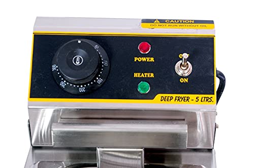 JE Professional Deep fat fryer 5-Liter Auto cut with 1800-Watts (Silver, stainless steel) with heavy fry basket for home, restaurants, hotels, Made in India