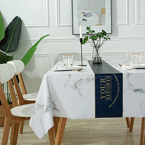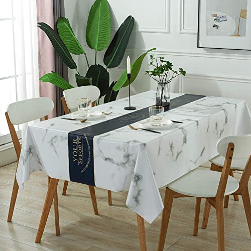 :: Jecrina Kitchen Dining Table Cover Decorative PVC Tablecloth Rectangle Waterproof Oil-Proof Table Protector, Grey Marble Printed PVC Tablecloth, Wipeable Table Cloth Mat (140 x 200 cm) ::