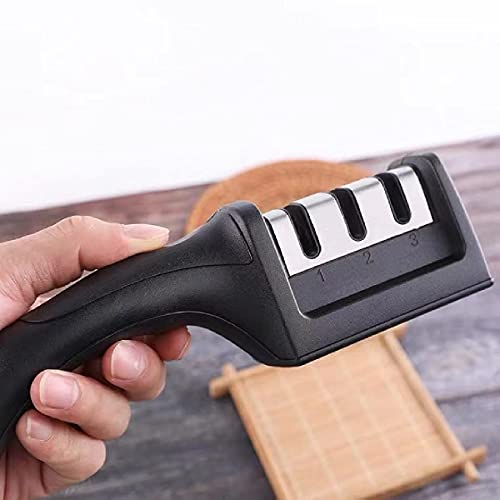 JEEJEX 3 Slot Grip Kitchen Knife Sharpener, Helps to Sharpen Dull Knives