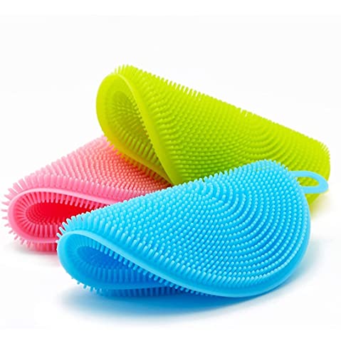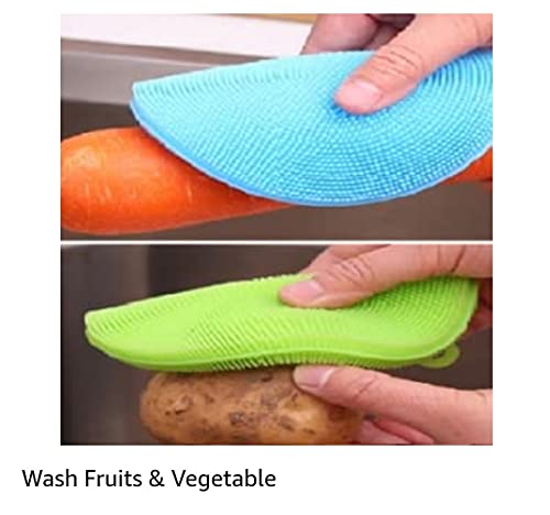 Jeven Silicone Washing Sponge Antibacterial Silicone Dish Scrubber Fruit and Vegetable Washing Brush Round Scrubber Pad Multipurpose Silicone Dishwashing Tools for Kitchen(2 psc)