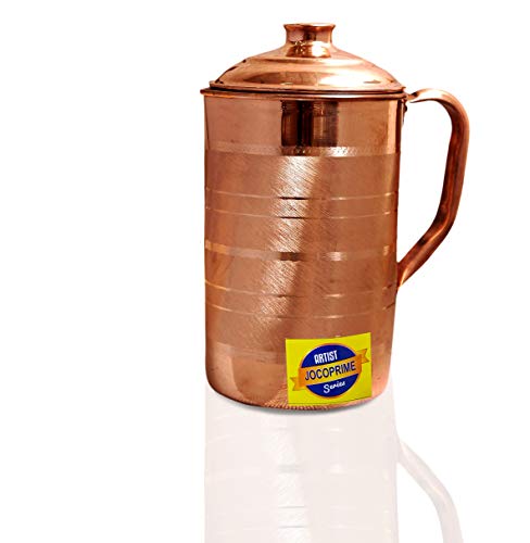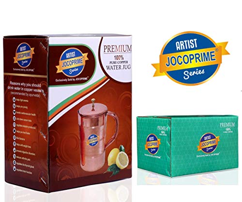 JOCOPRIME Copper Set-1 Bottle 1000ml – 1 JUG 2100 ML – Artist Series Design, Benefit Yoga Ayurveda Storage Water Home Hotel Restaurant Tableware Drinkware Gift Pack Set