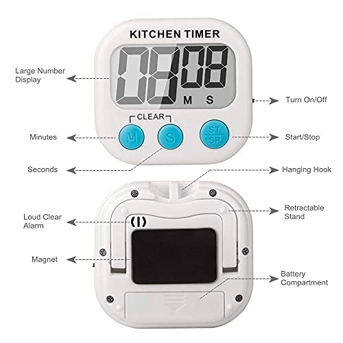 MAGNETIC BACK, RETRACTABLE STAND AND HOOK FOR HANGING – You have 3 different choices for placement of the Kitchen Timer. It can be positioned in variety of locations, like table, refrigerator, dry erase board and wall hooks.