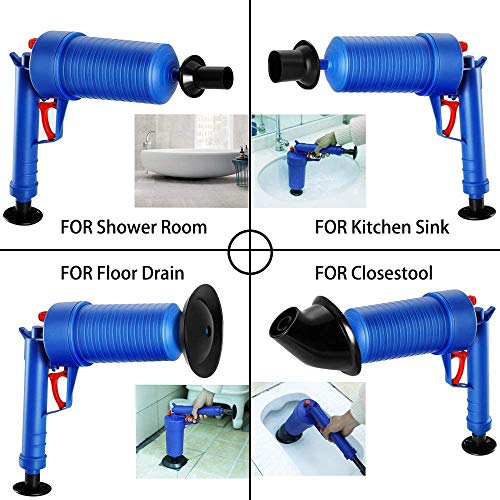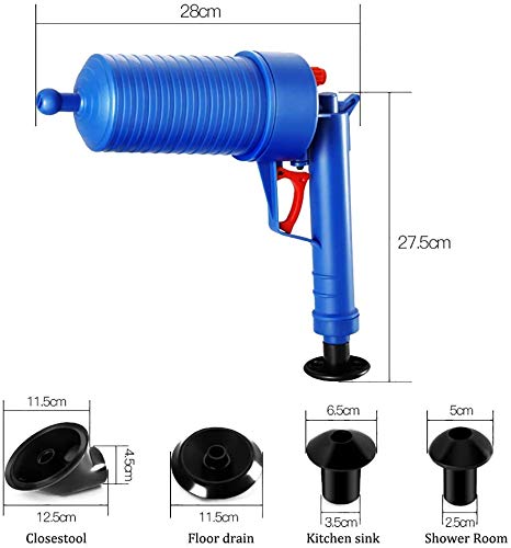 Multi-function: It can deal with various blockages caused by all sorts of rubbish such as hair, cloth, tea, leaves, grease,oil dirties and so on.With high pressure air power, it clears drains quickly and easily.Perfect for works on sinks, tubs and toilets.