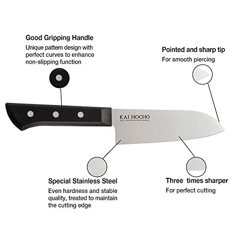 Kai Gift Box Hocho Premium Santoku Knife, 6.7 Inch. Blade, Black, Stainless Steel Chef/Kitchen Knife
