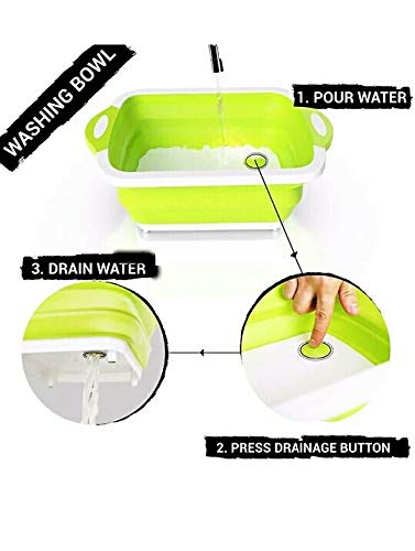 Kaira Enterprises Folding Cutting Board 3 in 1 Washing Bowl/Fruit Basket, Kitchen Sick (Green) – Silicone
