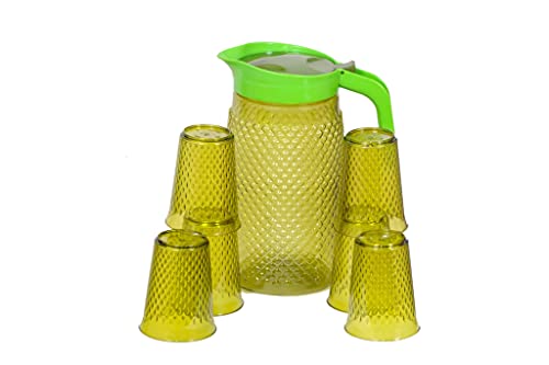 Jug with 6 Pieces Glasses Set for Juice/Water Serve Jug & Glass Set (Plastic):- who want the best in unbreakable jugs and are not willing to compromise on quality. Ideal for wherever you want the quality of real glass without the risk of broken glass. Will not scratch during normal use (do not clean with scouring pad).