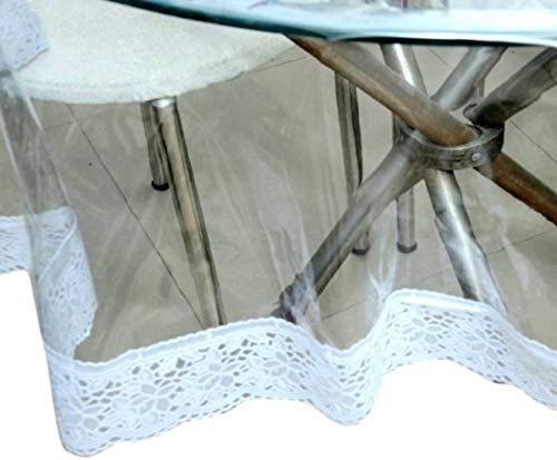 Be the first to review “Kartikey PVC Waterproof 8 Seater Round Dining Table Cover Cloth Transparent with White Border Lace 90″ Round”