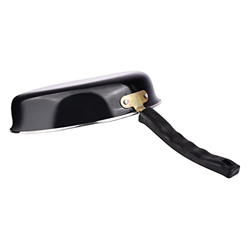 3mm Thick aluminium body: Durable Tadka Pan that heats up quickly and uniformly Riveted handle made of Bakelite: Cool touch handle that does not become loose over time