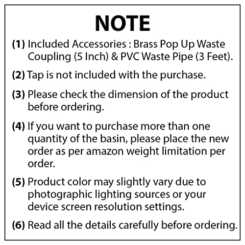 Included Accessories : Brass Pop Up Waste Coupling (5 Inch) & PVC Waste Pipe (3 Feet)